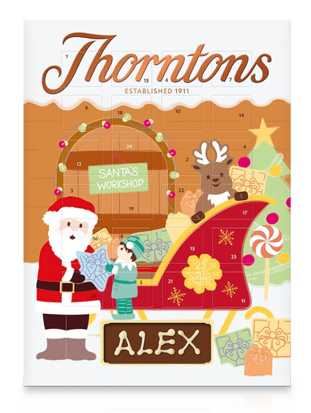 With beautifully detailed milk chocolate pieces and a name iced by hand, our Chocolate Santa Advent Calendar makes your Christmas countdown uniquely Thorntons.