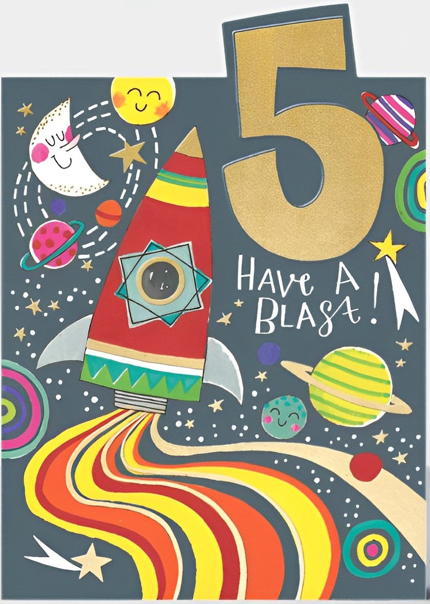 Age 5 Boy Rocket Birthday Card