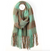 Mint green and olive green fluffy winter check scarf with coral and blue thread, finished with tassels at each end