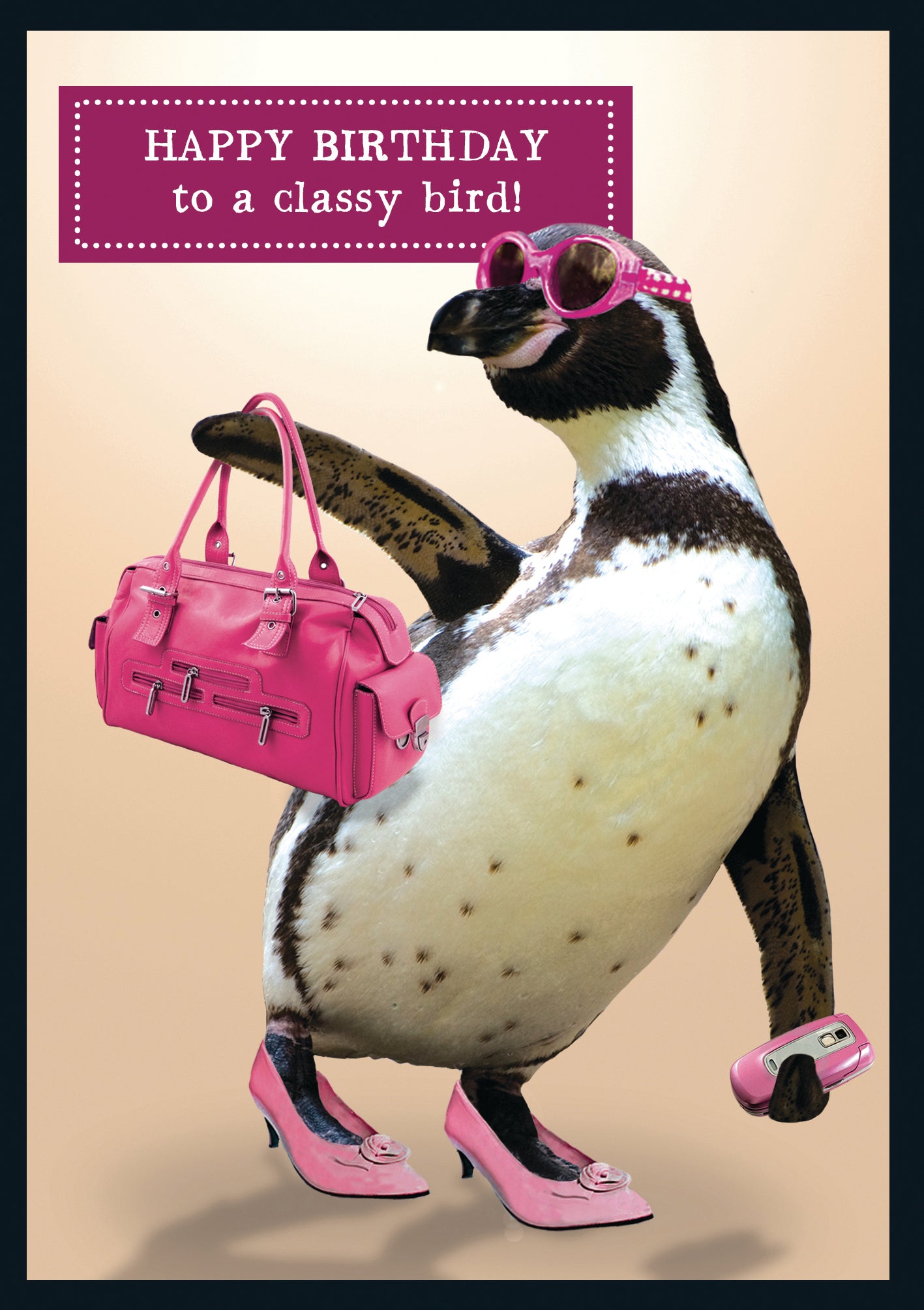 Classy Penguin Carrying Handbag Birthday Card