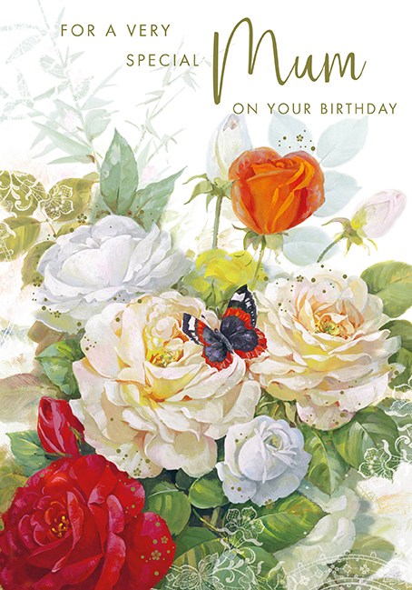Mum Roses/Butterfly Birthday Card