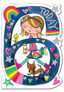 Star Jumps Age 6 Rainbow Girl Birthday Card