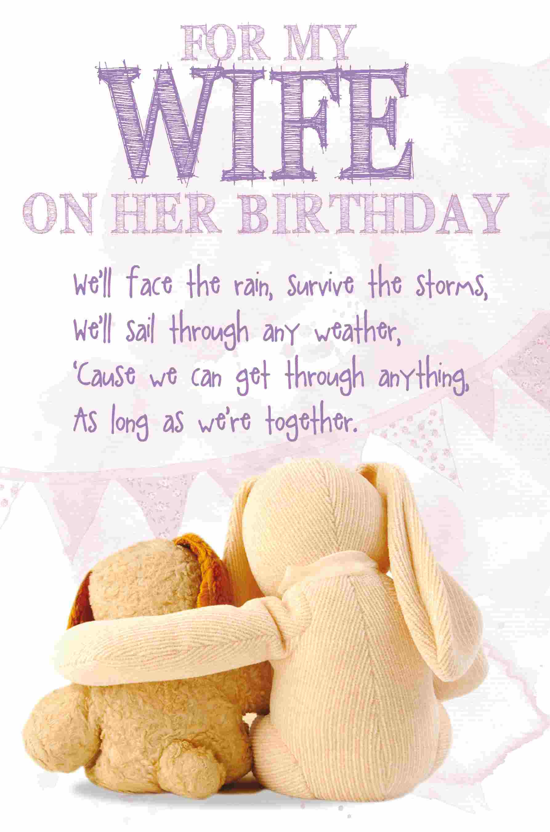 The Back Of Two Long-Eared Teddies Hugging Wife Birthday Card