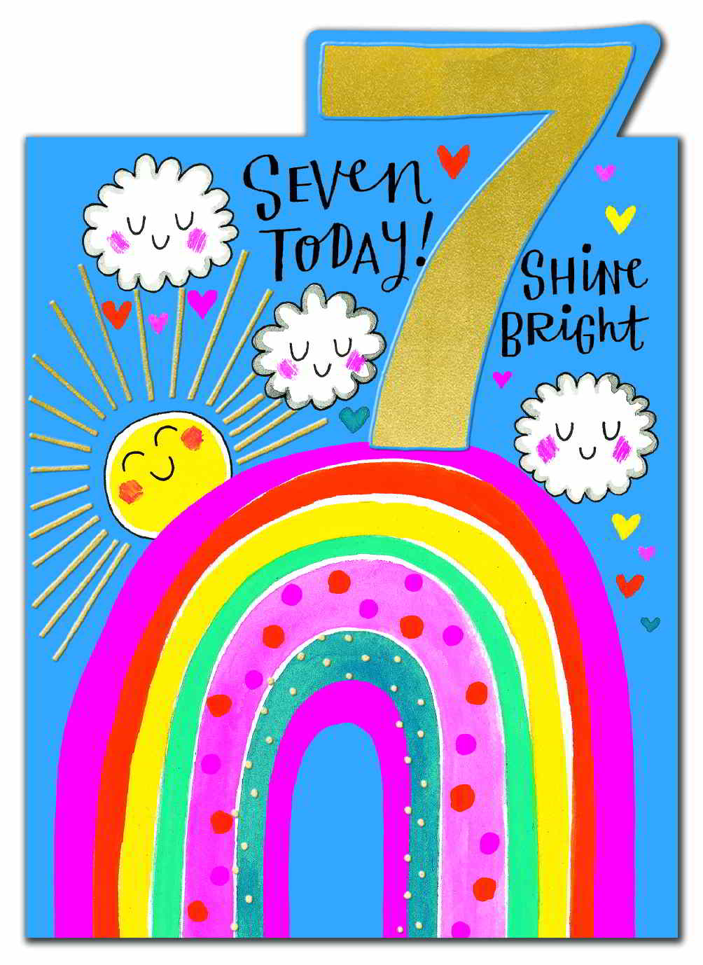 Tiptoes Age 7 Girl Rainbow Birthday Card