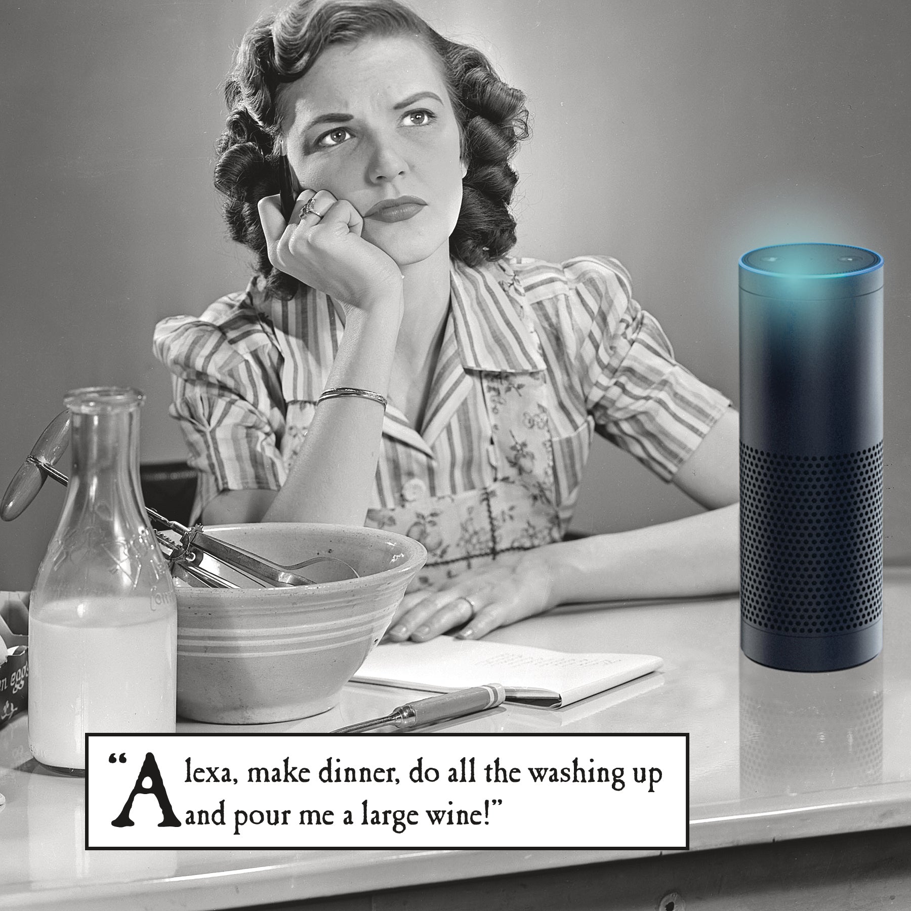 Woman Talkin To Alexa Card