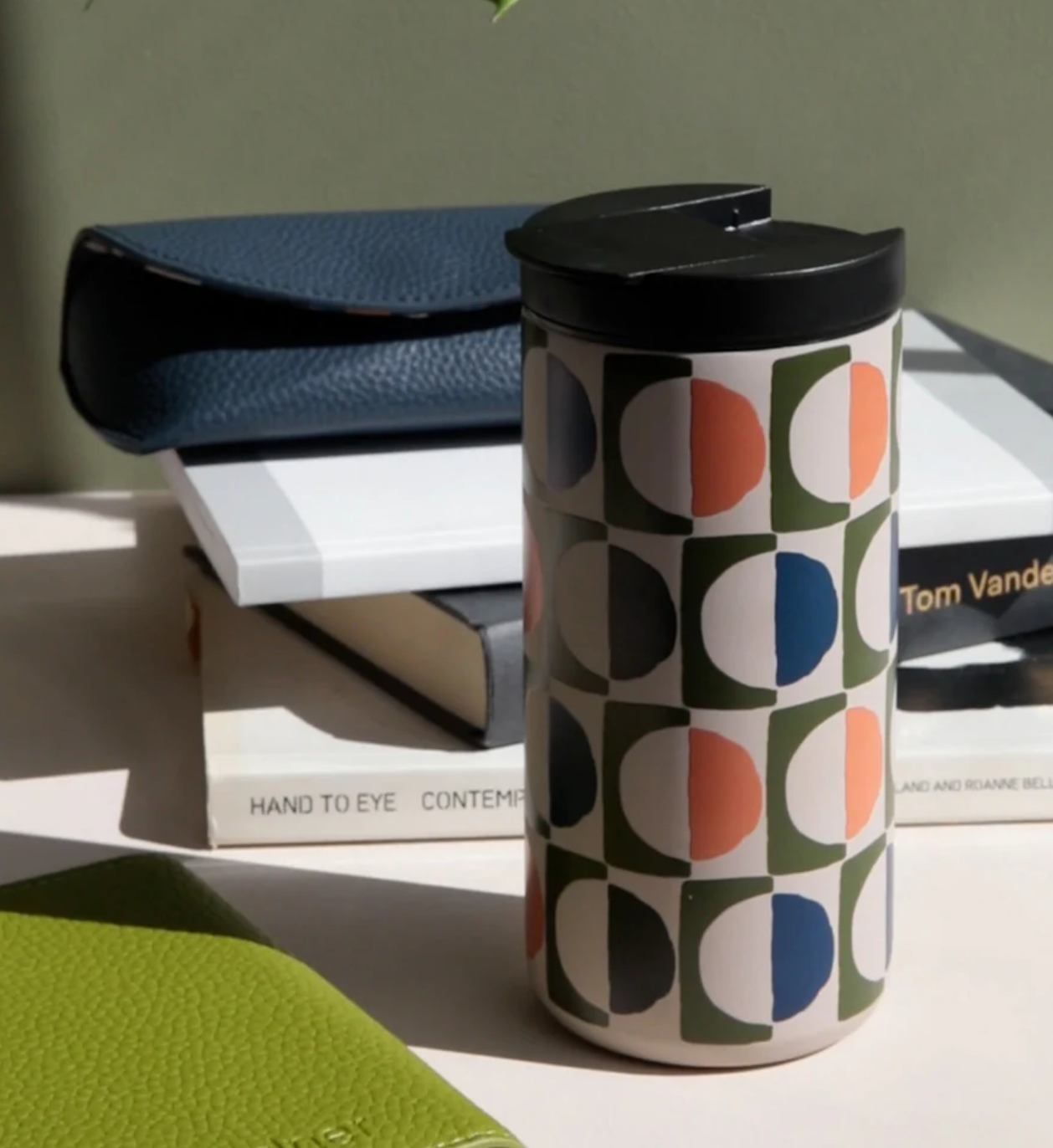 Keep your flat white hot, or your frappe cool, with our new retro inspired geometric circles travel mug. Constructed from insulated stainless steel and with a vacuum sealed clip top lid, this mug will be your new favourite commuting companion. Part of our new Gardner range.