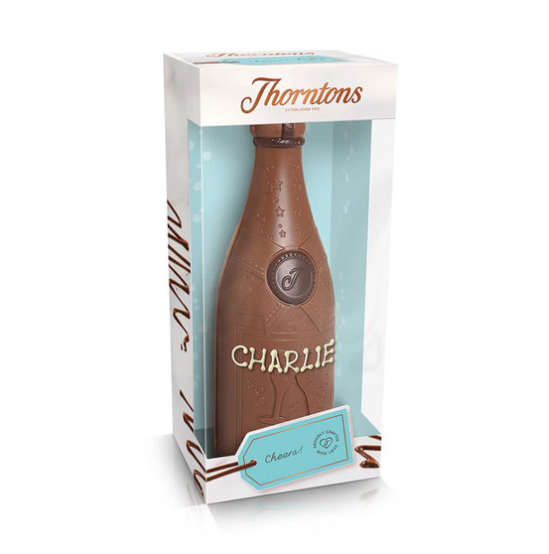 Crafted from smooth milk chocolate and intricately detailed, our Chocolate Celebration Bottle, which can be personalised, makes the perfect gift for those seeking to celebrate any occasion.